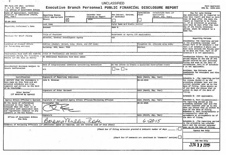 [54] John O. BRENNAN , 2015 OGE Form e278; signed 5/12/2015, OGE accepted 6/11/2015