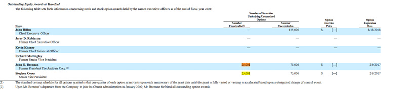 Brennan’s 25,001 shares were held in his TAC 401K account, “…Long-Term Incentive Compensation plan that TAC had under its prior owner SFA [which] …consisted of awards of stock options and/or restricted stock under the SFA Plan, adopted by [Global] in 2007 following its acquisition of SFA…”[7] These shares of stock were held in the TAC 401K accounts of current and former employees. Brennan held a proprietary ownership interest in TAC when he joined the Obama Administration in 2009.[8]