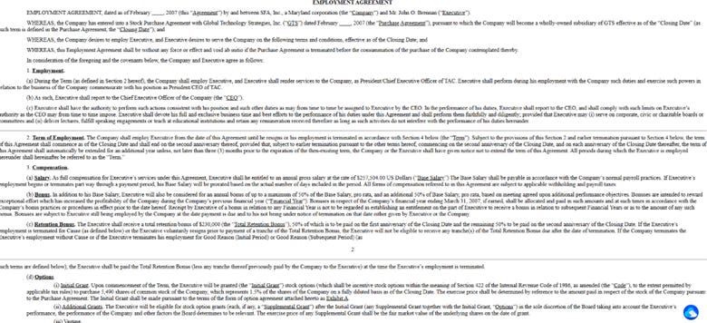 Under the employee vesting schedule in effect when John Brennan left TAC, he had 25,001 shares of TAC stock in his TAC 401K plan account on February 9, 2008, the anniversary date of Damian Perl’s purchase of SFA, Inc. and TAC, Inc. [6]